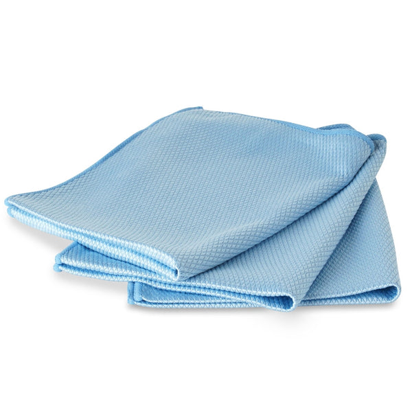 Our Liquid X glass towels provide a streak free finish without scratching your surface. The unique diamond pattern quickly picks up product on any surface, leaving you with a streak-free finish, everytime. These grooves quickly trap water and dust particles to allow for faster and more effective cleaning. Measuring 14" x 18" this towel is great for finishing touches on windows, wheels and mirrors. Safe for use on any glass, windows, chrome, or painted surfaces.