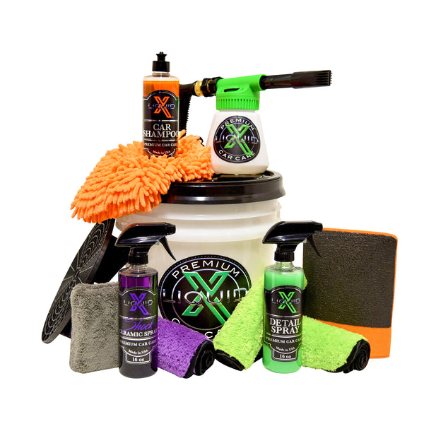 Complete with everything you need to wash, decontaminate and protect your vehicle! Wash down your car easier and more effectively than ever with our Foam Gun. Decontaminate the surface with our Liquid X Clay Towel paired with our Detail Spray for lubrication. Remove paint overspray, brake dust, fresh tree sap, animal droppings, and other embedded contaminants to bring your vehicle's paint back to it's original feel and look. Complete your detail with our Liquid X Ceramic Spray that will leave your paint with a deep, rich look while also adding 9 months of protection!