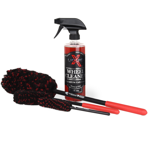 Liquid X Wheel Cleaner paired with our Official Wheel Woolies ensures no spot will be missed! This combination lifts and removes any harmful dirt or greasy residue. Our Wheel Woolies come as a set of 3 including, one 8" brush, one 12" angled caliper spoke brush, and one 18" brush. These various sizes allow you to get into every nook and cranny to achieve maximum results on your wheels. Our Wheel Cleaner is safe to use on virtually any wheel type. The acid-free formula is tough on contaminated wheels, yet safe enough to use as a regular cleaner. Allow our advanced Wheel Cleaner to destory any oil, grime, dirt, grease, brake dust and other harmful desposits on your wheels before it becomes permanent corrosion.
