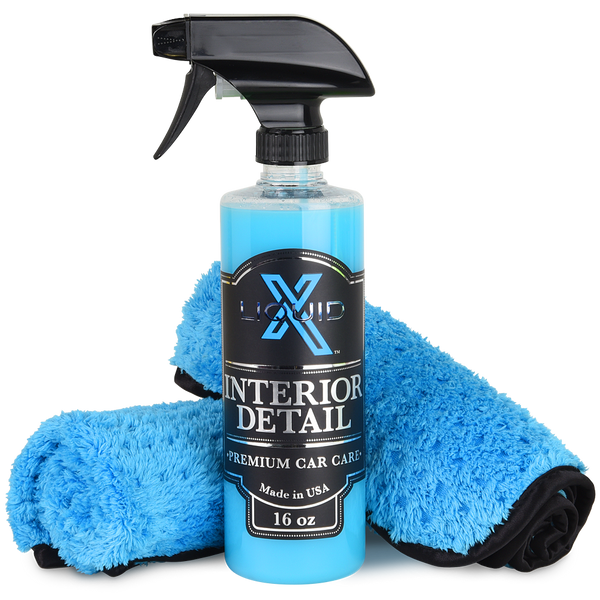 This 3 piece detail kit is a quick and easy solution for your vehicle’s interior needs. Liquid X Interior Detail has been formulated with anti-static agents to gently clean and remove dirt, dust, body oils and fingerprints, while eliminating odors. This unique chemical blend helps repel dust to give you a longer lasting clean while providing a light, sweet scent. Treating your vehicle with Liquid X Interior Detail will prolong the life of your interior by lightly cleaning and nourishing beyond the surface. Our formula is safe for use on plastic, vinyl, leather, dashboards, wood trim, shift knobs and door panels. Our signature Xtreme towels allow you to get twice the work done in half the amount of time. The unique plush waffle weave design leaves you with a no-streak finish everytime. Complete with a bottle of premium Interior Detail and 2 Blue Xtreme Microfiber towels, this kit will leave your interior spotless and smelling great!